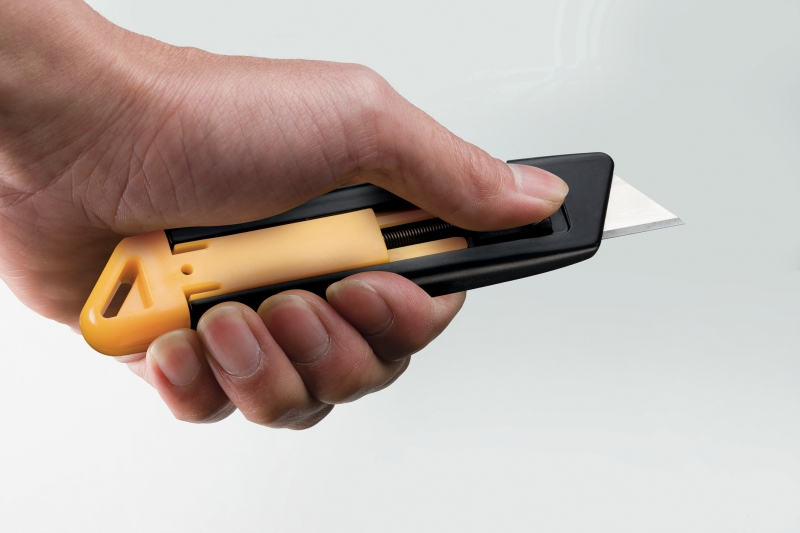 For left-hand user. Ergonomic designed utility knife with aluminum die-casting body.